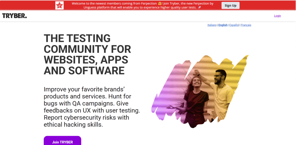 Ferpection is website tester company. Now a part of Unguess group and to join the tester community you can try Tryber, it is a shared community of Ferpection. Now the question is how does this work? you have to explore the sites and application with your smartphone or laptop. send the valuable opinions of yours either it is positive or negative. Once your reviews are checked by the moderator then you can get paid for testing the apps or websites.